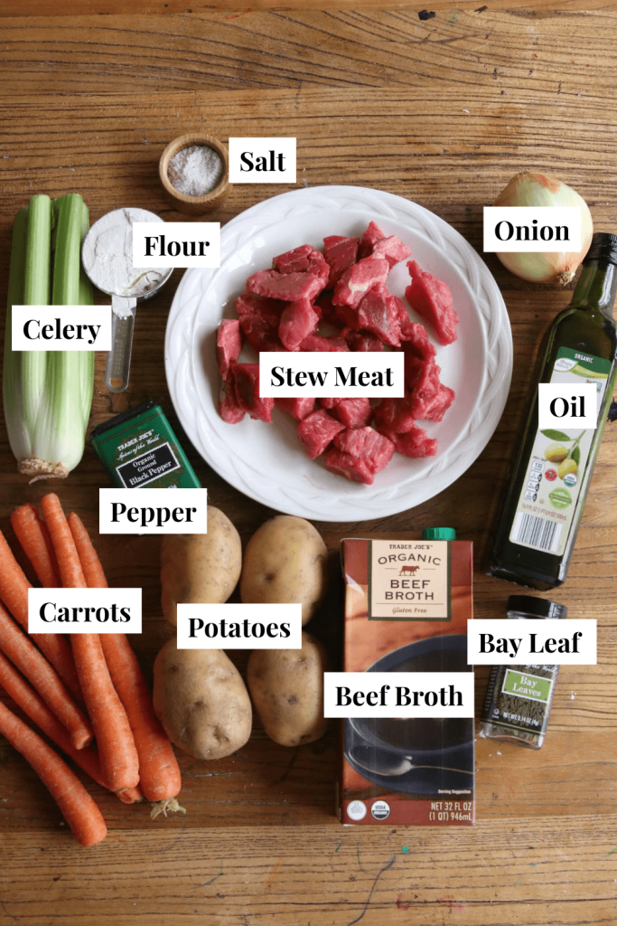 beef stew ingredients laid out