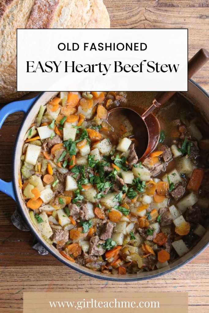 I love a good hearty and rich beef stew on a weeknight to feed the family! I have even made this beef stew for a Christmas party to feed friends! This easy beef stew doesn’t feel like you are just feeding a simple soup, since it has good hearty chunks of beef in it.