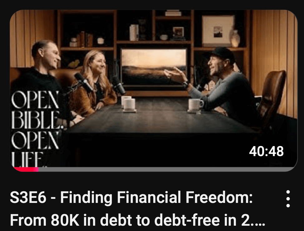 Got to go on our church’s podcast with my husband a couple of weeks ago and share our story. Not a story we love having, but if it can be an encouragement to anyone with debt, we are glad to share!